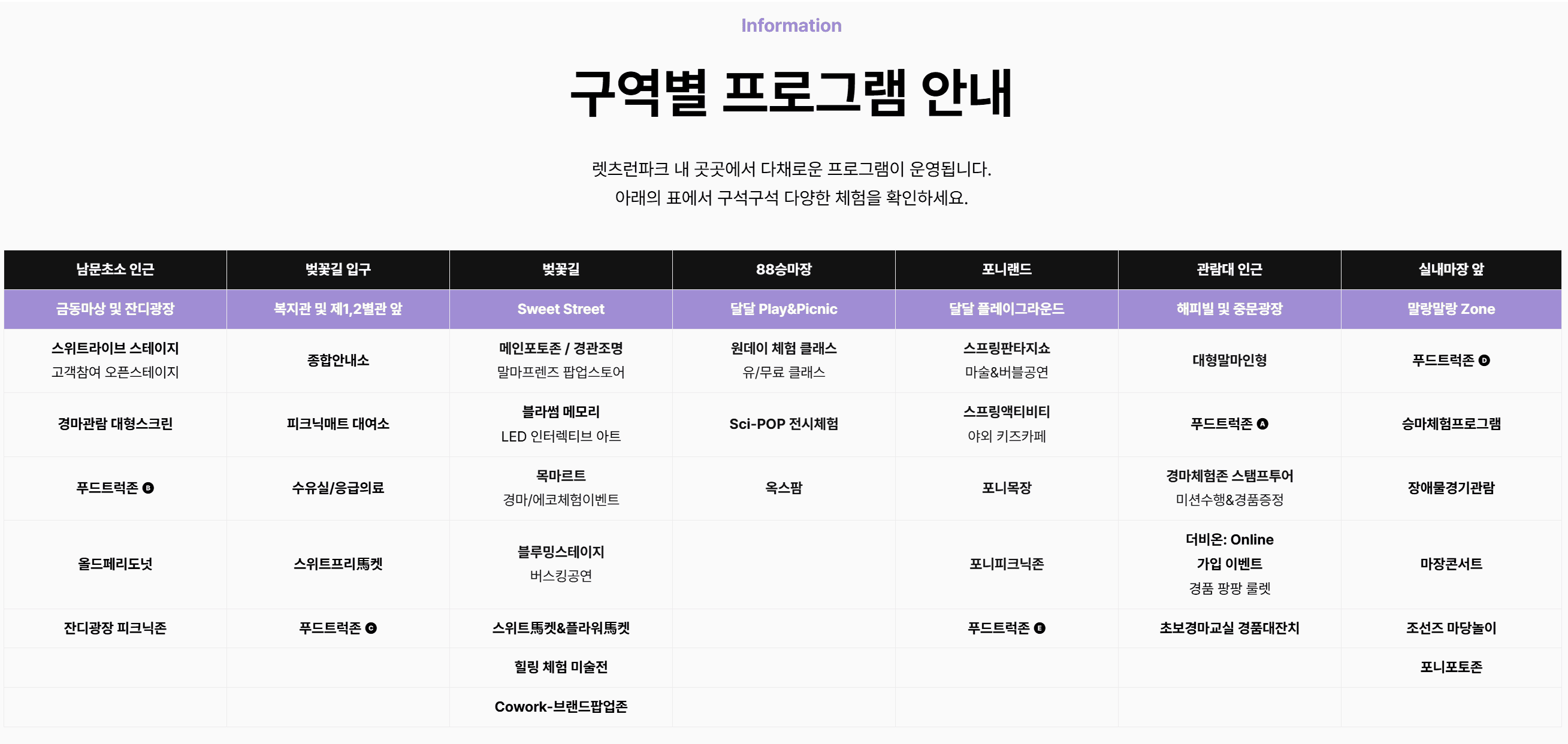 - 스위트스트리트 : 디저트를 테마로 한 포토존과 팝업부스