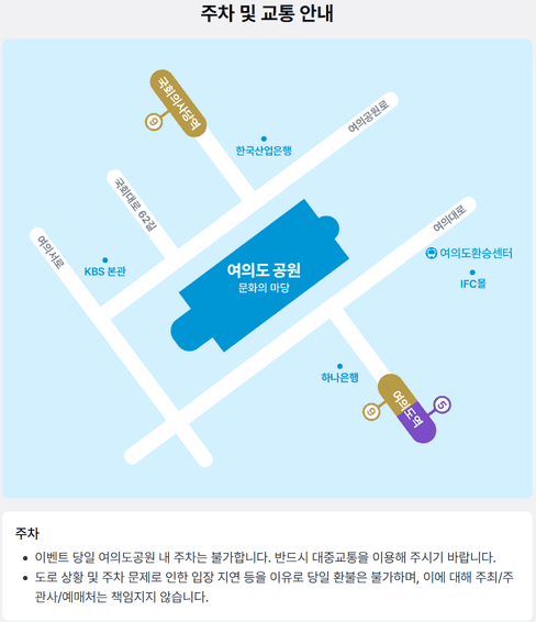 이벤트 당일 공원내 주차는 불가능! 이라고 하니 모두들 대중교통을 이용해 주세요!