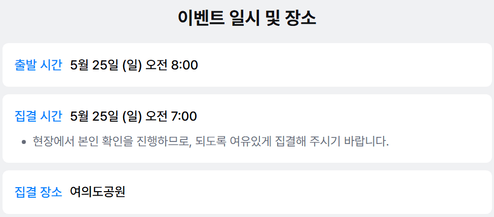 이번 마라톤은 2025년 5월 25일(일) 오전 8시에 서울 여의도공원 일대에서 진행됩니다.