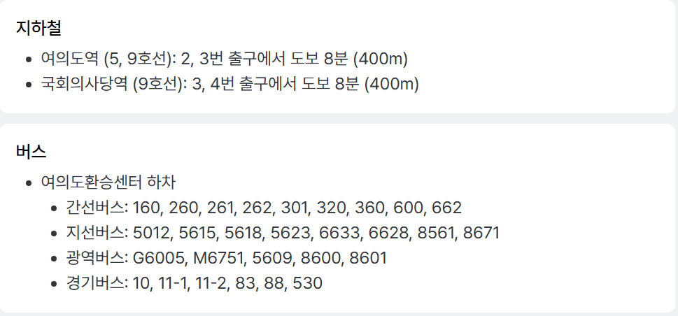 대중교통은 아래 내용을 참고하시면 될 것 같습니다.