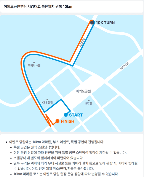 마라톤 출발 지점은 서울 영등포구 여의도공원 문화의 마당입니다.