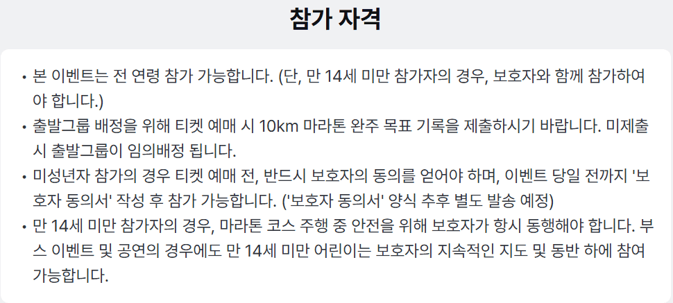 또 기본적으로 확인해야할 참가 자격도 있었어요. 전 연령이지만 14세 미만은 보호자와 함께 해야하니 가족단위로 신청하실분들은 참고하세요