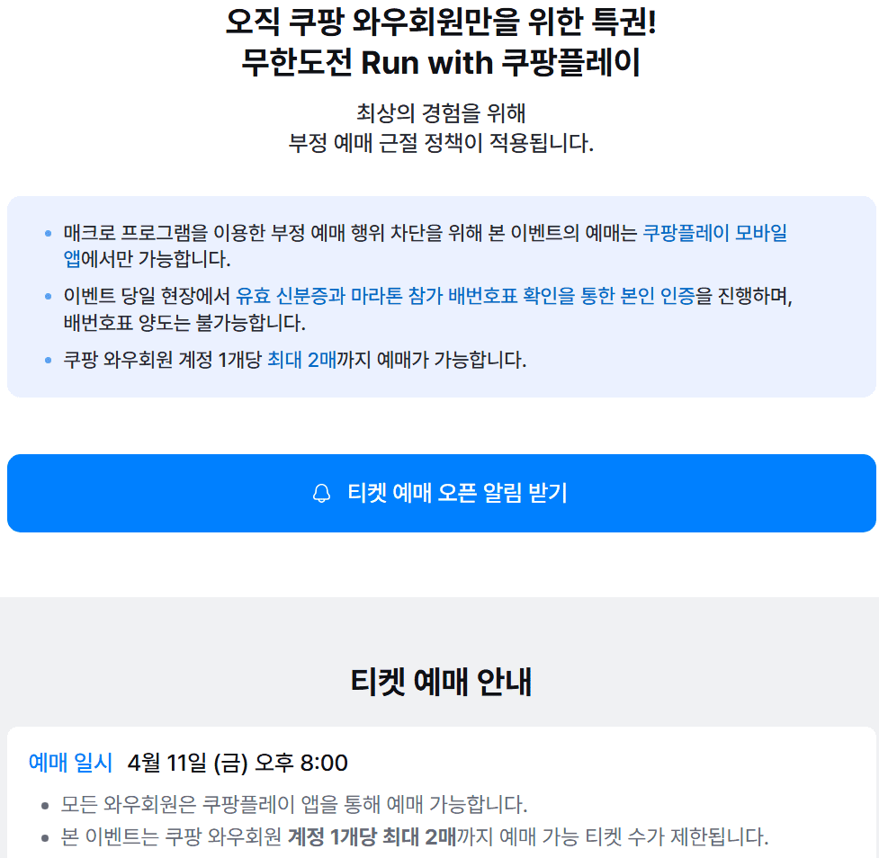 참가 자격: 쿠팡 와우 멤버십 가입자 한정 / 1계정당 2매 가능